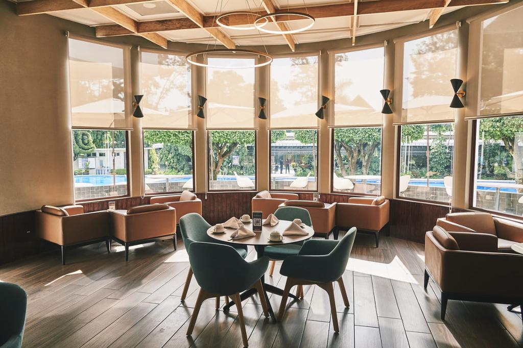 La Rotonda es el lugar perfecto para compartir con amigos, ver un partido o simplemente platicar. Además, puedes disfrutar de una vista panorámica del club a través de sus ventanales que conectan a la terraza, la piscina principal, los jardines y La Pérgola.