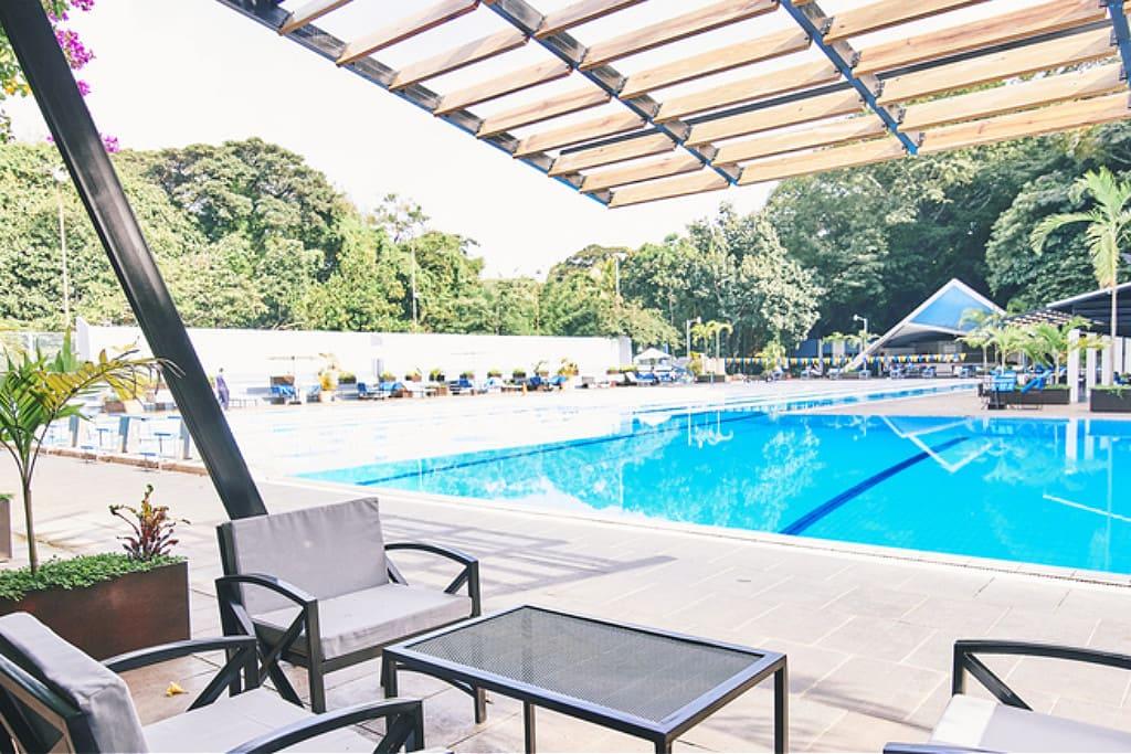 Con una vista privilegiada, disfruta de una comida agradable en la Piscina Olímpica.
