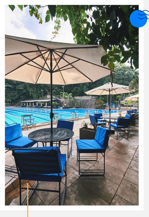 Con una vista privilegiada, disfruta de una comida agradable en la Piscina Olímpica.