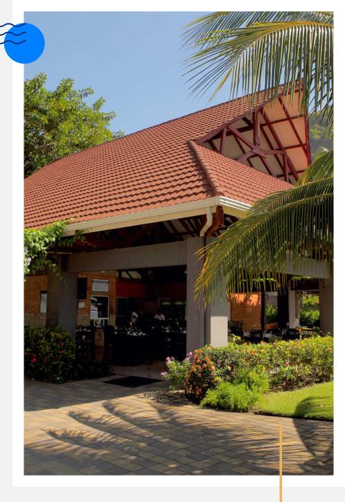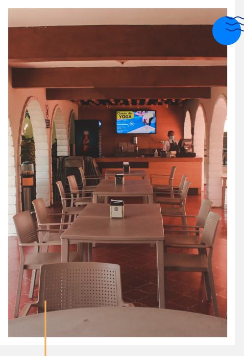 El Restaurante de El Balsamar brinda un espacio cómodo, abierto, con la mejor vista panorámica de la playa frente a la piscina familiar.